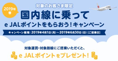 JAL「2019年春 国内線に乗ってeJALポイントをもらおう!キャンペーン」など