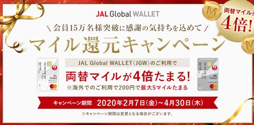 JAL Global WALLETで両替するとマイル4倍キャンペーン(2%マイル還元)